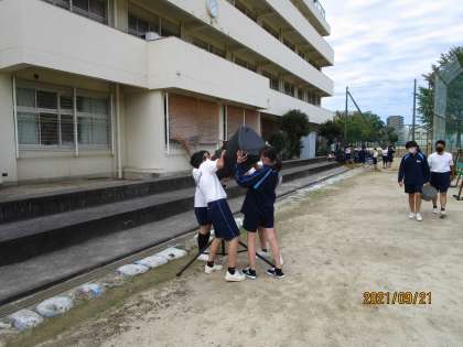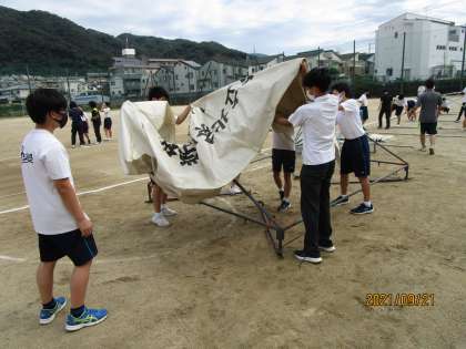スピーカーを運んでスタンドに立てていました。テントが完成しそうです。みんな、ほんまにありがとう。