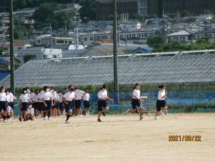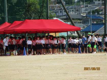 今年の工夫点で、北条中では人数が少なく、出番が多いので結果として招集場所に長くいる人が多いのです。だから、招集場所の暑さ対策でここにテント用意しました。生徒の皆さん、どうでした?
