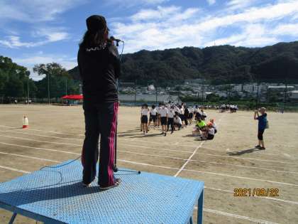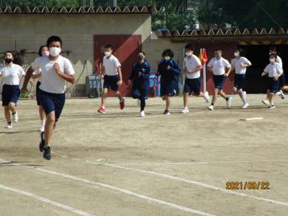 3年全員リレーの予行です。残念ながら予行なので、全員で半周を回るだけでした。本当に走っていたら盛り上がっていたでしょうね。でも、全員ですっきり移動できていました。これもとても気持ちのいいことです。ありがとう。