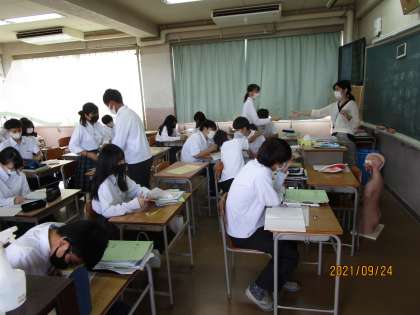 今日の授業は「消化酵素」を覚えるという授業でした。先生からヒントカードも提示されていたようです。