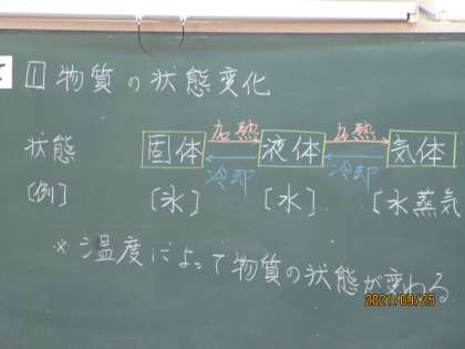「物質の状態変化」について勉強しています。固体から液体、液体から気体というところです。