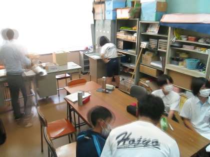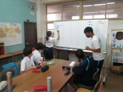 今日から後期の専門委員会が始まりました。写真は生徒会役員の人たちが後期スローガンについて話し合っているところです。