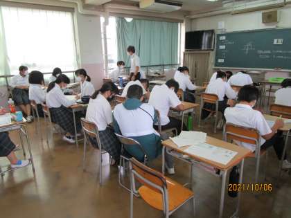 今日は「力の成分・分解」というところでしょうか、作図について勉強し、プリントの問題を解いているところでした。