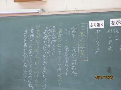 障がいがある友人との別れ際にどんな言葉を言っているのだろう?という問いを先生がしていました。それについて、まずは個人思考、続いて隣前後の人と意見交流をしていました。最後にそのグループを代表して、クラス全体で意見を言っていました。立派だし、優しいなと思いました。すばらしい。