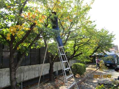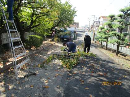 櫻の木の枝が伸びすぎているので、市教委の方にも手伝ってもらって切りました。ありがとうございます。