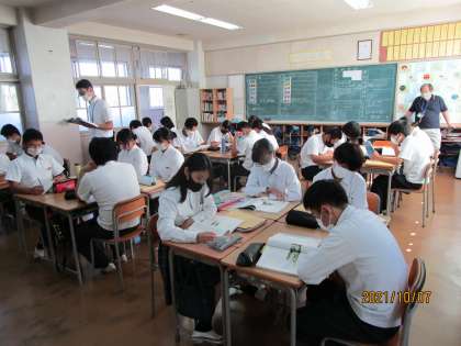 「幸せの条件」という教材文を学習していたと思います。先生が範読(模範読み)していました。ユーモラスなところもあり、クスクス笑いながら聞いていました。