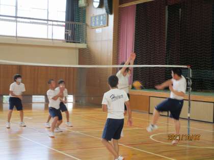 3年男子体育です。今日からバレーボールです。この体育の先生はバレーボールが専門です。生徒も伸び伸びプレーしていました。すばらしい。