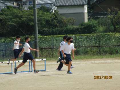 1年男子体育です。今日もグラウンドいっぱいに「〇○、、フォームきれいやぞー」と生徒を肯定評価する声が響いて(マスク着用)いました。それだけでうれしくなります。もちろん、生徒はグングン自信をつけていきます。みんなにありがとう。