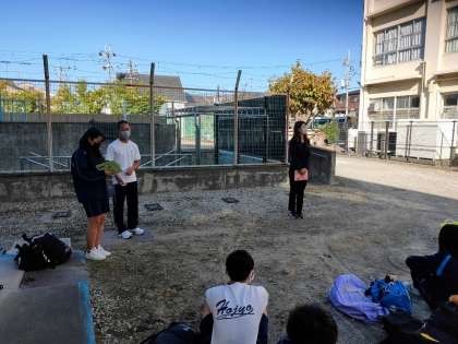 先生たちからも話がありました。予定どおりに集合でき、しっかり話の聞けた良い式でした。素晴らしい。