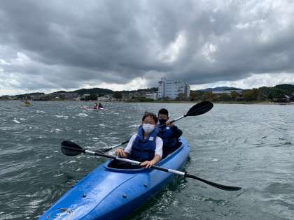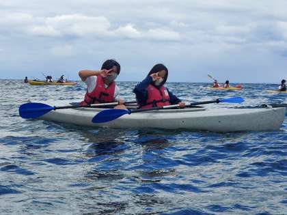 あとからカヤックのナイスな写真が送られてきました。なぜ、こんな素晴らしい写真が撮れるかというと、撮影している先生もカヤックに乗っているからです。