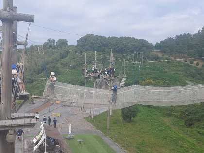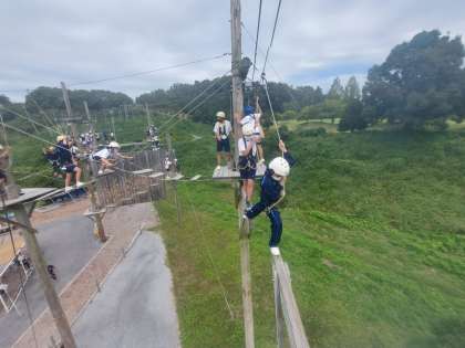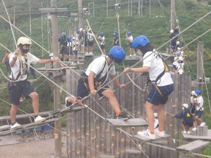 実際に自分もやっている先生のカメラは一段と迫力があります。その先生が、ロープ渡りをしているときにわざと揺らす生徒がいます。「おまえの成績を1にしたるー。」と笑顔で叫ぶ先生です。