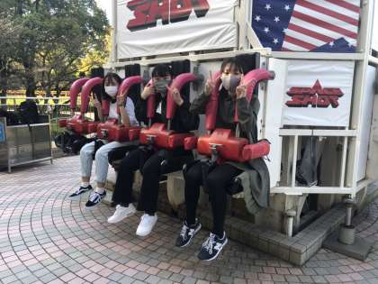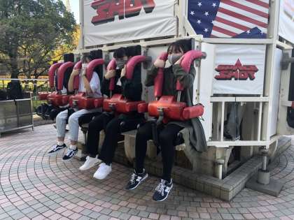 1、2枚目は今から上がるところです。3枚目がおりてきたところです。ご存知でしょうが、ものすごく高いところから落下するアトラクションです。