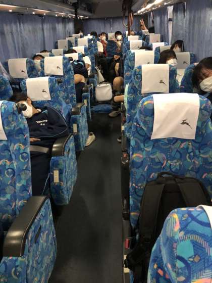 順調に帰っています。5時半に天理の料金所を通過しました。写真は車内のようすです。さすがに寝てます。