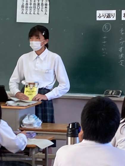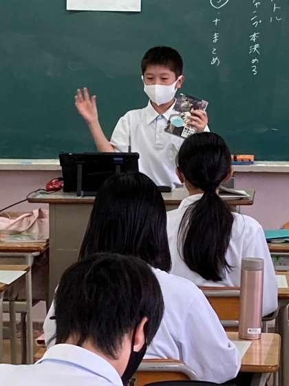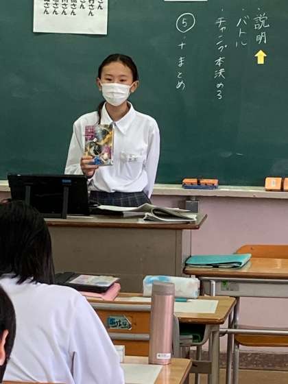 1年生の国語です。ビブリオバトルとは何人かの人が自分の好きな本を紹介して、聞いている人がどの本を読みたくなるか競うものです。