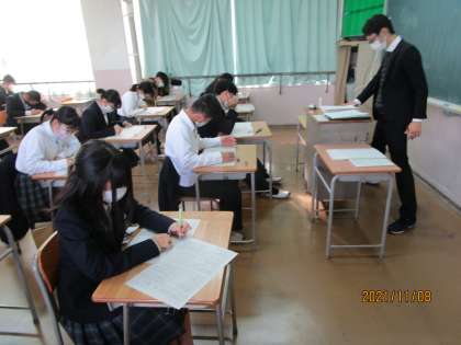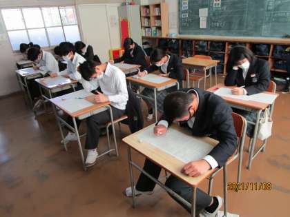 3年生の国語の時間です。このクラスは今、単元テストを実施しているところです。黙々と問題にあたっていました。