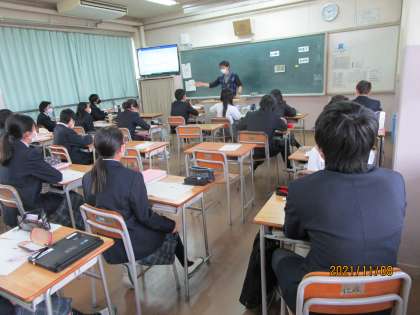 1年生の数学の時間ですが、数学の従業に入る前に先日あった文化祭の感想を先生が話しました。「ソーラン」を文化祭でやるのもいいよ、という話でした。