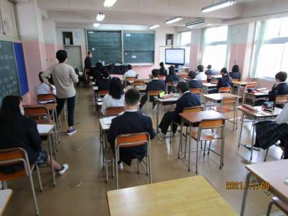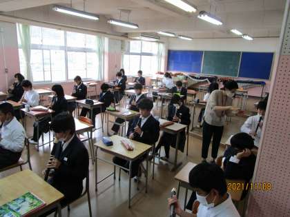 新型コロナの警戒レベルが1になり、前の人と距離を取ってリコーダーの練習をするようになりました。