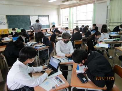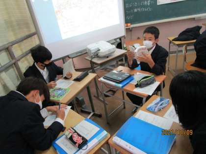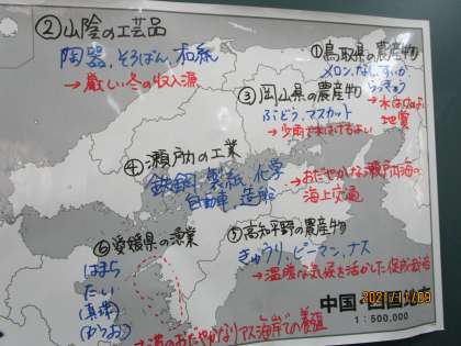 地方都市の中枢部と都市部の結びつきについて考える授業でした。生徒のタブレットには昨日作成した中国と四国地方の産業、産物がアップされています。昨日の授業はそこまででしたが、今日はさらにそこから地方といわゆる都市部の関り方について考えていました。