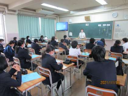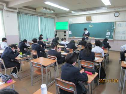 1年生の総合的な学習の時間です。明日、アイマスク体験を実施します。その前に目が不自由な方のことについて考える時間を持ちました。