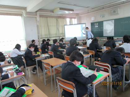 今日のこの授業で驚いたのは、「今日は南アメリカの勉強をするよ。じゃ、これ見てみよう。」と先生がタブレットを操作すると、大画面にグーグルアースの画面が大写しになり、ぐんぐん近づけると首都の○○(忘れました!!)が見えるんです。少し引くと、高山地帯、少し近づけると首都の街並みが映りました。生徒は、へー、こんな高所に首都があるんですか、と驚いた表情でした。以前ならこんなことは簡単にできませんでした。こういうツールは使わないと損ですね。