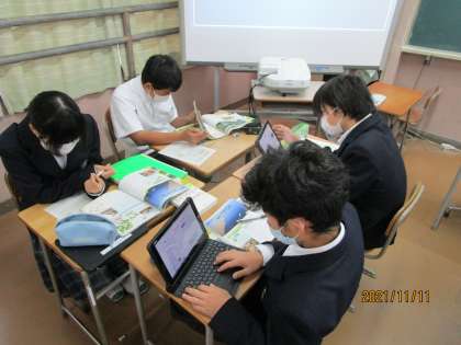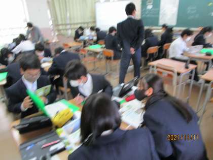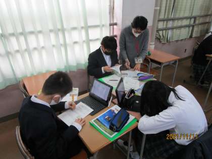 1年生の社会です。この授業も集中していました。南アメリカの人々がが自然とともに生きていく、その暮らしの工夫について考えています。