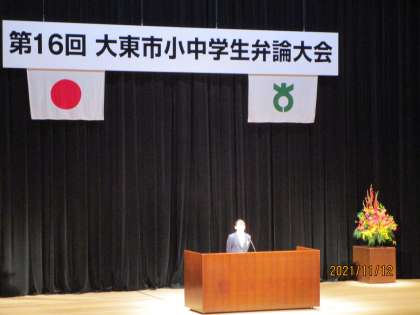 本日、北条中より大東市小中弁論大会に参加してまいりました。見事大東市議会議長賞を頂きました。児童虐待をテーマに堂々と、そして、具体的事例を挙げ、最後には家族の大切さにも触れ、素晴らしい内容の発表でした。教育委員会の先生も校長のところに駆け寄ってきて「先生、北中良かったですねー。」と耳打ちされました。すばらしいです。何回も練習したことでしょう。そして、大東市の児童生徒を誇りに思いたくなる一日でした。どの児童生徒もすばらしいのです。飯森山の歴史、地域ので活動に参加して思うこと、SNSの人を傷つける問題、電車の席を譲ることについて(これも特別考えさせるすばらしいものでした)等々、みんなすばらしい。本当です。ありがとうと言いたいです。