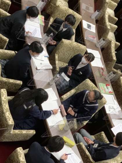 すごいですね。府の本会議場で大阪府生徒会さみっが行われました。今年は北条中学校が行く番でした。とても貴重な体験ができました。引率の先生に聞くと、本校の生徒たちは積極的に話し合いに参加していましたとのことです。素晴らしい。