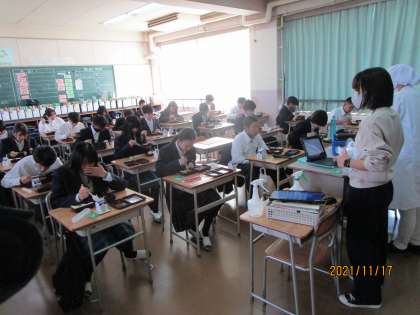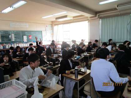 今日は校長が午前中出張で給食時間からスケッチです。3枚目、手が挙がっているのはお代わりを希望している生徒たちです。