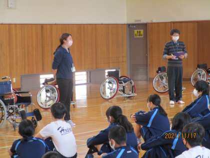 今日の5,6限は貴重な体験をしました。. 大阪府立障がい者交流促進センター ファインプラザ大阪より講師の方をお招きして、スポーツタイプの車いす体験をしました。