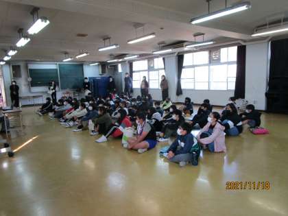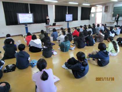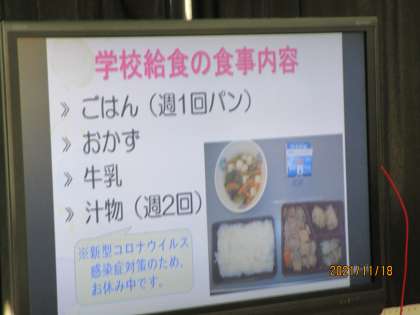 中学の栄養教諭の先生が中学給食についていろいろと説明しました。最後まで本当に静かに聞いていました。すばらしいと思います。