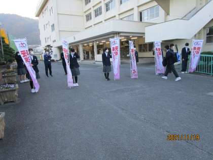 今朝は生徒会役員の人と体育委員会の人たちがあいさつ運動に参加です。ありがとう。