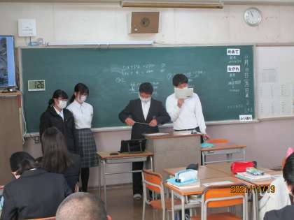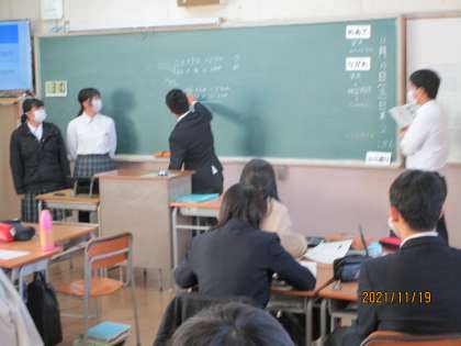 修学旅行にちなんだ問題を自分たちで作り、問題を解き、そして、その解き方をプレゼンしています。すばらしい授業と思いました。
