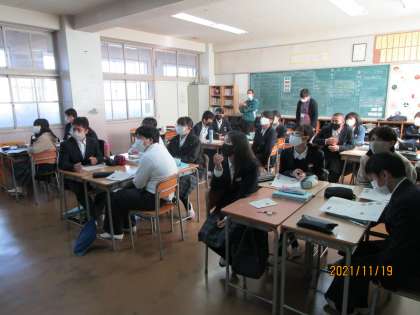 先生が説明するのはいつものことですが、生徒が説明すると「どんなことを言うのだろう?」と先生より緊張して聞くことがよくあります。写真の班はカレンダーの法則から方程式を導いて問題を解いていました。