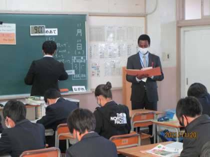 ケニアから来たAETの先生が進出英語単語を発音しています。