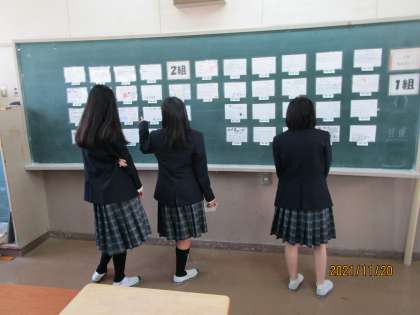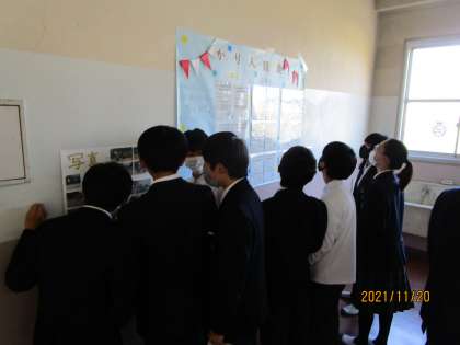 国語の本のポップ展示、体育大会での生徒会種目での借り人競争のなぜ、その人を選んだのかの理由の展示。(これも感動的なものが多かったですよ。信頼できる人、クラスを盛り上げてくれる人、優しい人などの理由が書かれています。)3枚目は理科の展示ですがタブレットの中の映像で見ることができます。これもすごいですね。