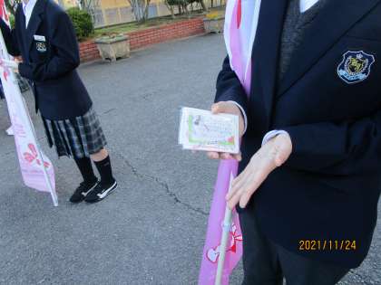 先日の生徒集会で生徒会役員の人が話していたティッシュキャンペーンが始まりました。あいさつを積極的にしようというキャンペーンです。
