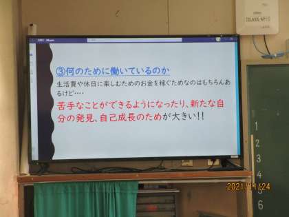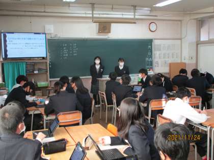 2年生が先日、morinekiさんにお世話になって行った職場体験報告を本日1限に行いました。