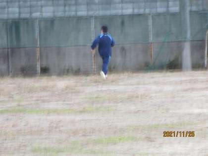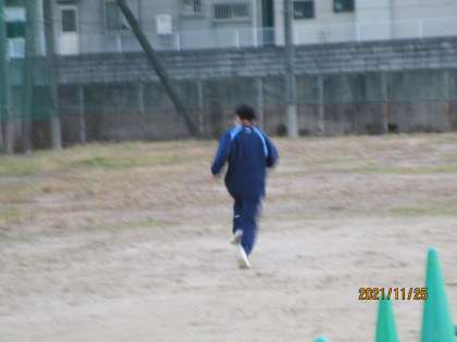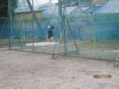 陸上部の活動です。走る人と円盤投げのチームに分かれています。