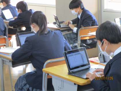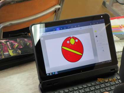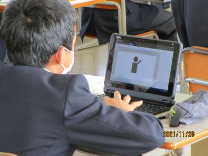 2年生の美術です。ピクトグラム、日本語で何というのでしょうか。標識ですか?この時間は「喜び」を表すピクトグラムを作っているところです。