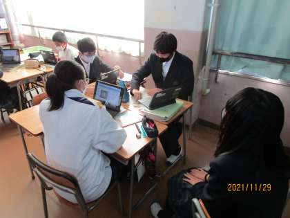2年生の理科です。電池を並列、直列でそれぞれつないで明るさを実験した結果をもとに今日はその理由を考えていました。