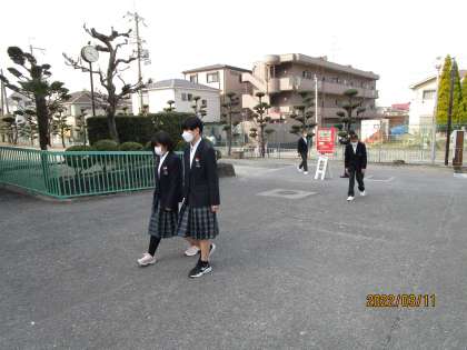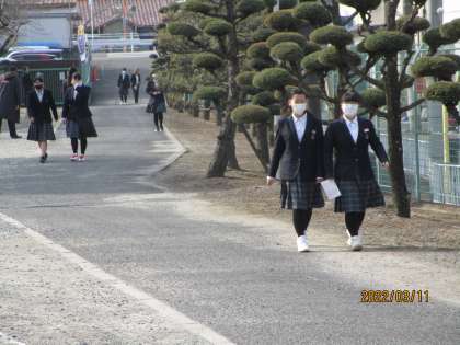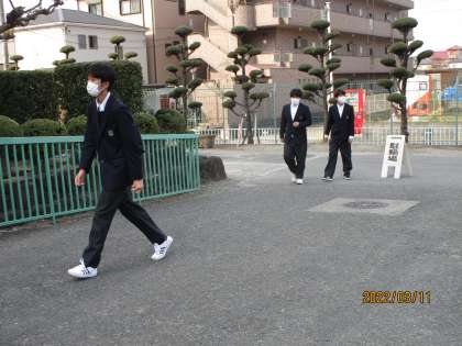 9時20前後に登校する生徒たちです。3年生と在校生代表の生徒会役員さんたちが登校します。