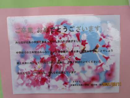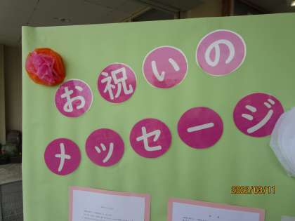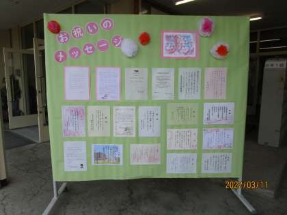 玄関に祝電を掲示しました。北条小学校の先生たちから心温まるメッセージが届きましたよ。昨日わざわざ持ってきていただきました。ありがとうございます。