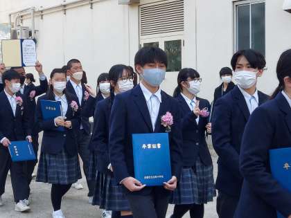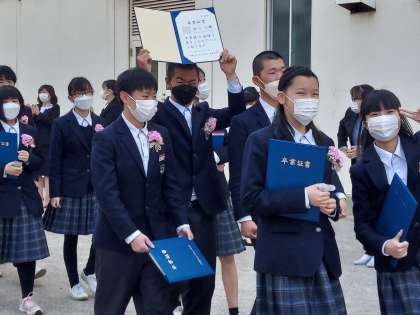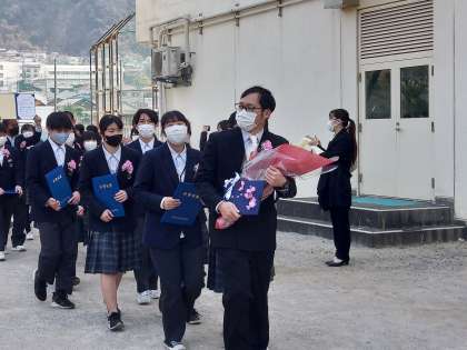 とうとう最後の最後の場面です。3年生のすばらしい姿を今日の卒業式でも見ることができました。新しいステージで思う存分青春してくださいね。ご参加いただいた保護者の皆様、本当にありがとうございました。