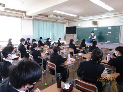 めずらしくごちそうさまの様子です。全員が先生の方を向くまで静かに待って「ごちそうさま」が言われました。すぐに廊下の容器に返却していきます。