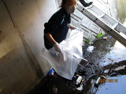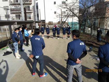 放課後、大東青年会議所主催の地域ボランティア活動に参加しました。1年生2人、2年生が4人です。保護者の方も1名参加していただきました。始めに青年会議所の方があいさつされました。すぐにゴミ拾いが始まりました。