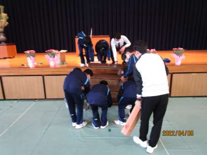壇上もそうじし、階段も設置しました。階段はとても重たかったと思います。ありがとう。