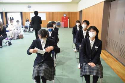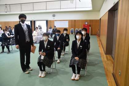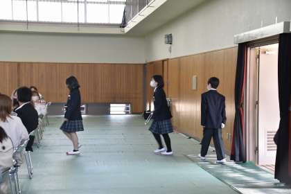 生徒会役員が在校生代表としてスタンバイしていました。いよいよ入場です。