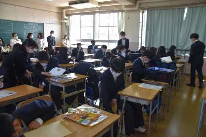 入学式が終わり、教室へ上がりました。教科書に名前を書くことや4月8日の連絡、先生の思いなどを聞いて今日はさよならとなりました。