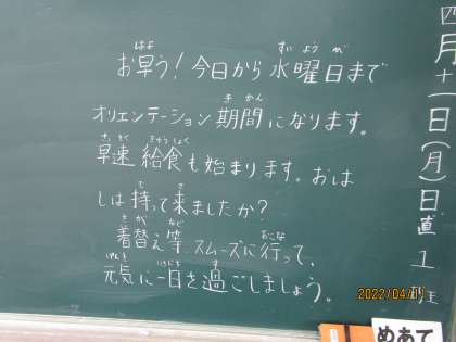 新年度の始まりなので、学校や学年、学級の約束ごと、係や委員決め、掃除分担場所などいくつものことを相談して決めていきます。月〜水の三日間はオリエンテーション期間としています。