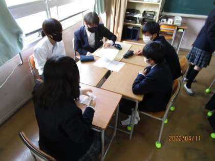 こちらも3年生のクラスです。班で相談して係などを決めているところです。